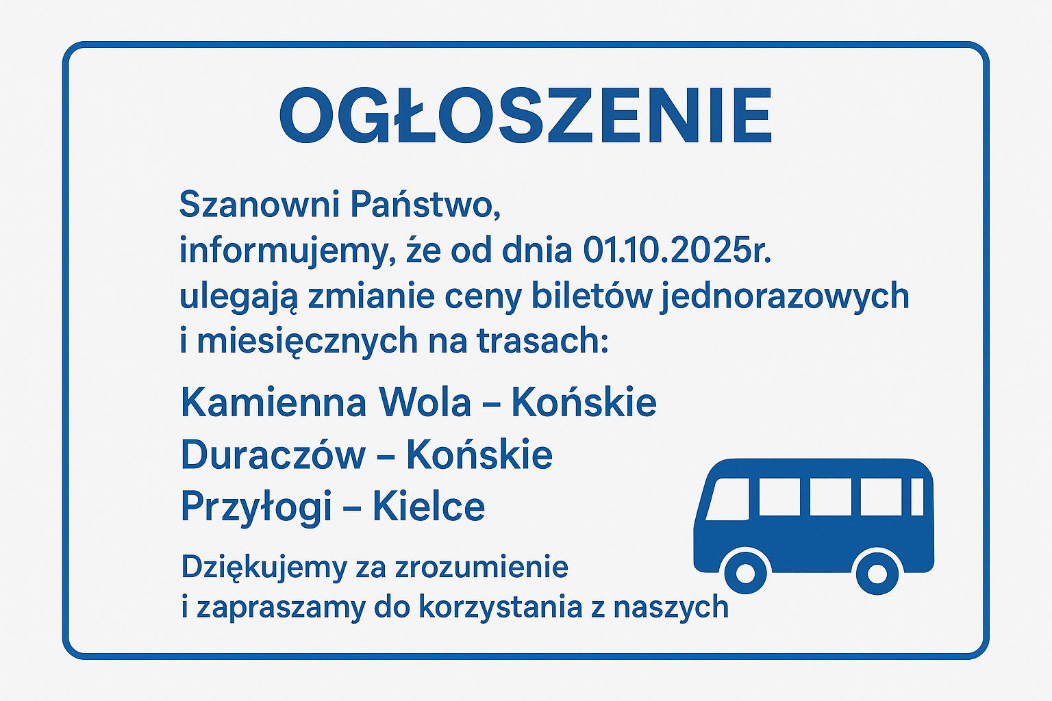 Informujemy, że od 01 lipca br. została uruchomiona nowa komunikacja publiczna
