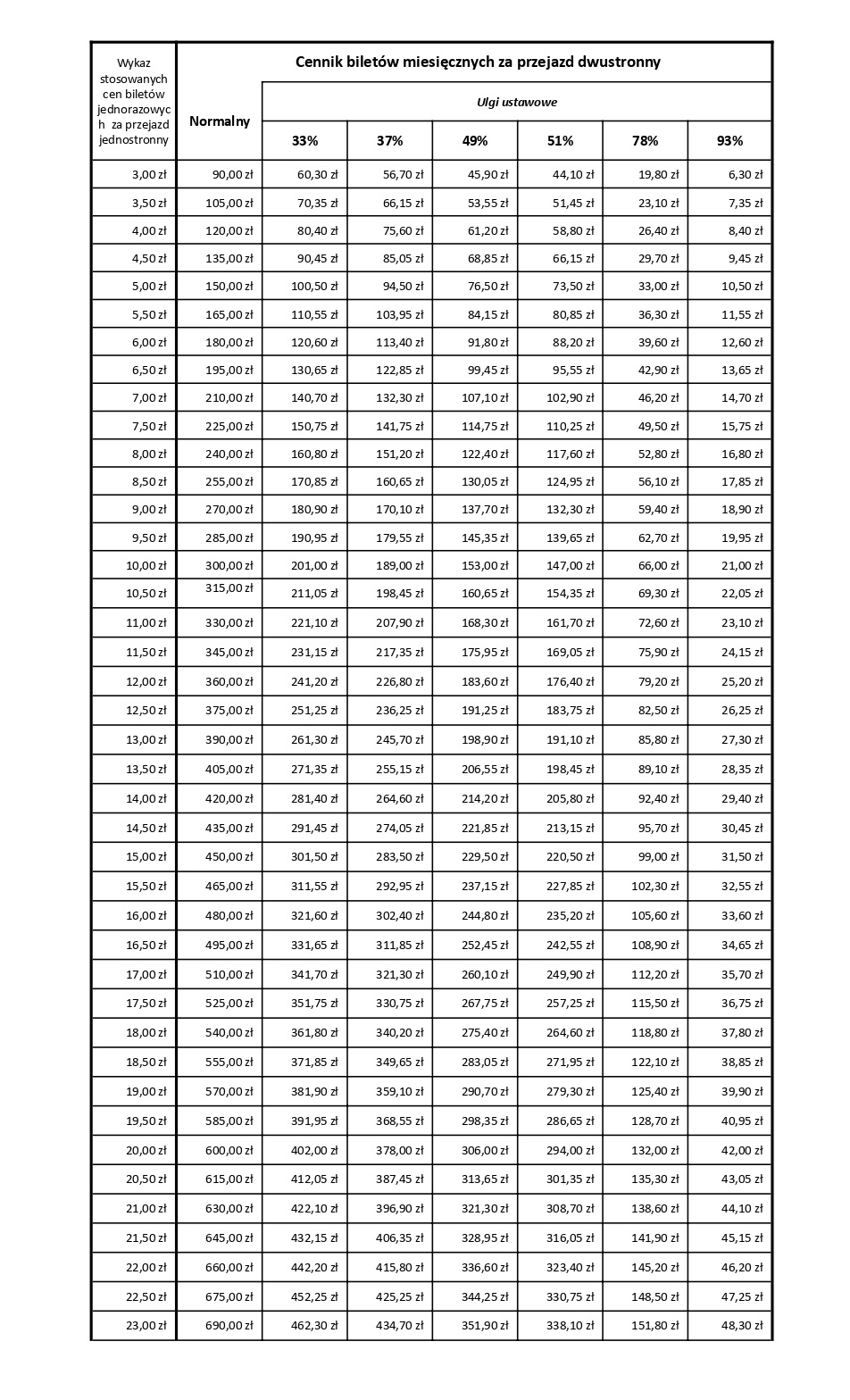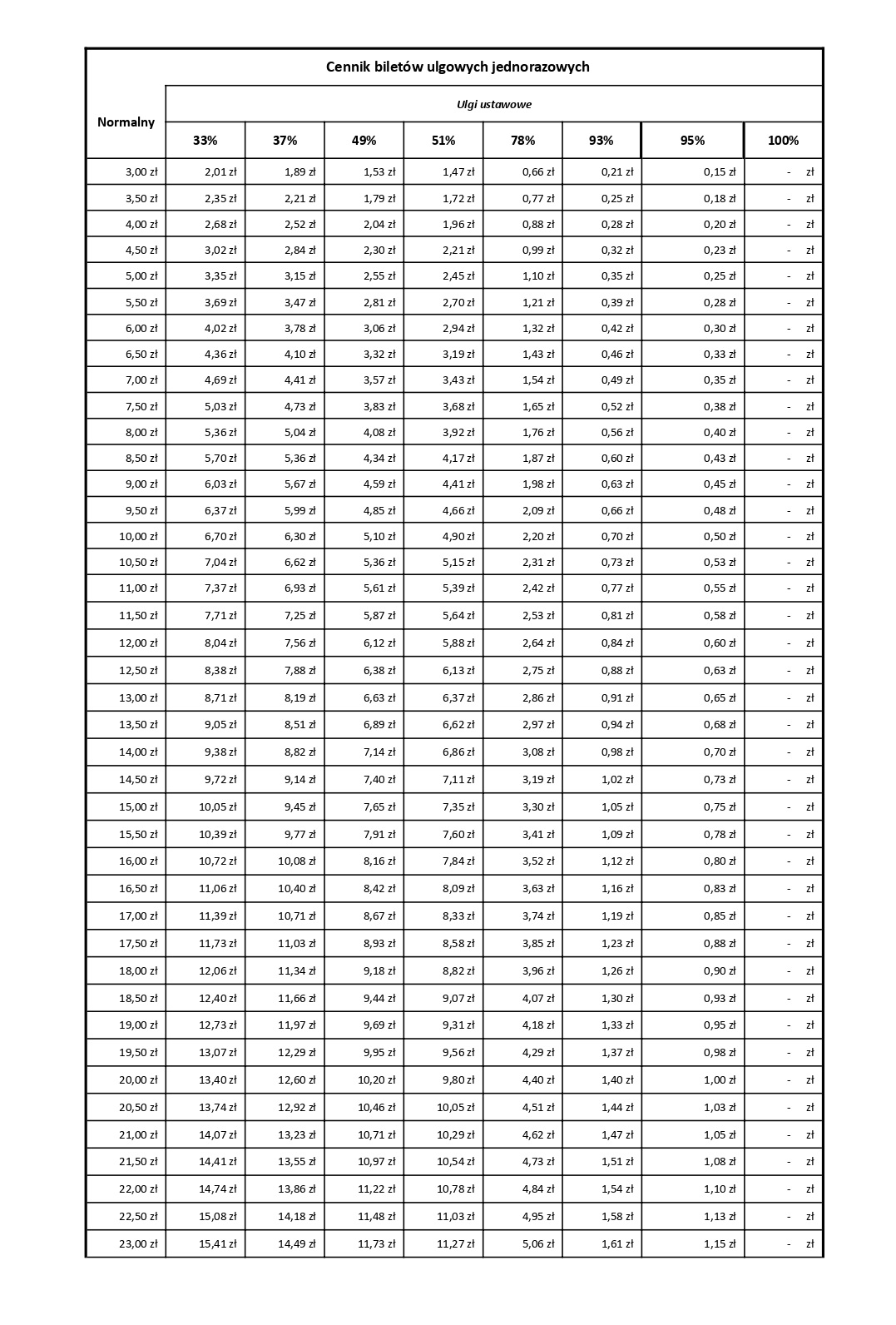 Cennik Końskie - Włoszczowa (CENNIK WAŻNY OD 02.01.2024R)